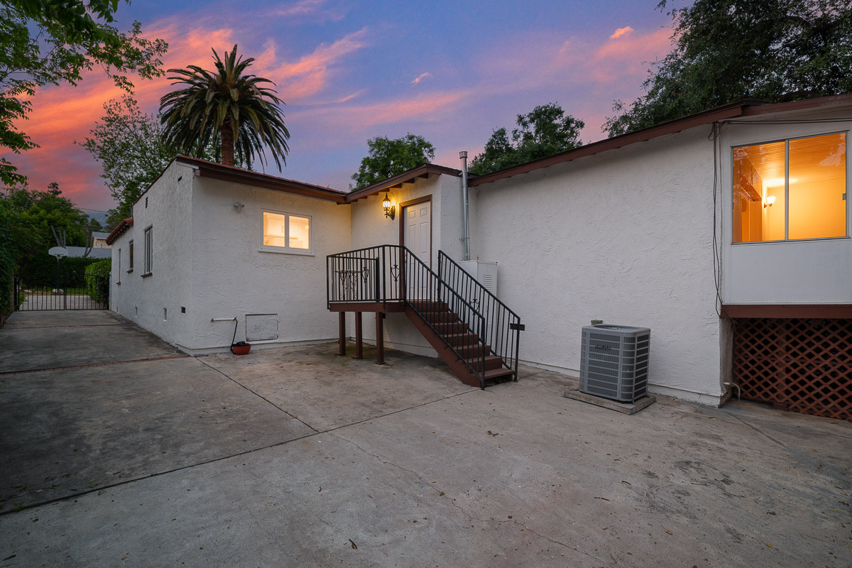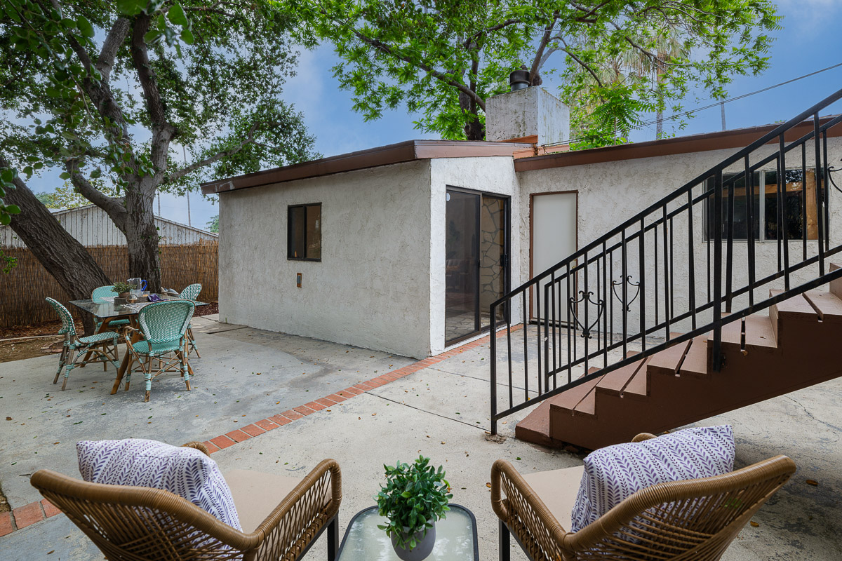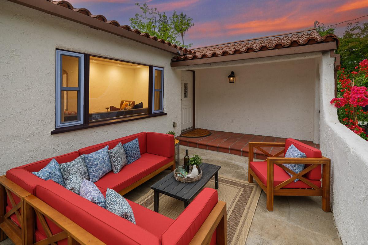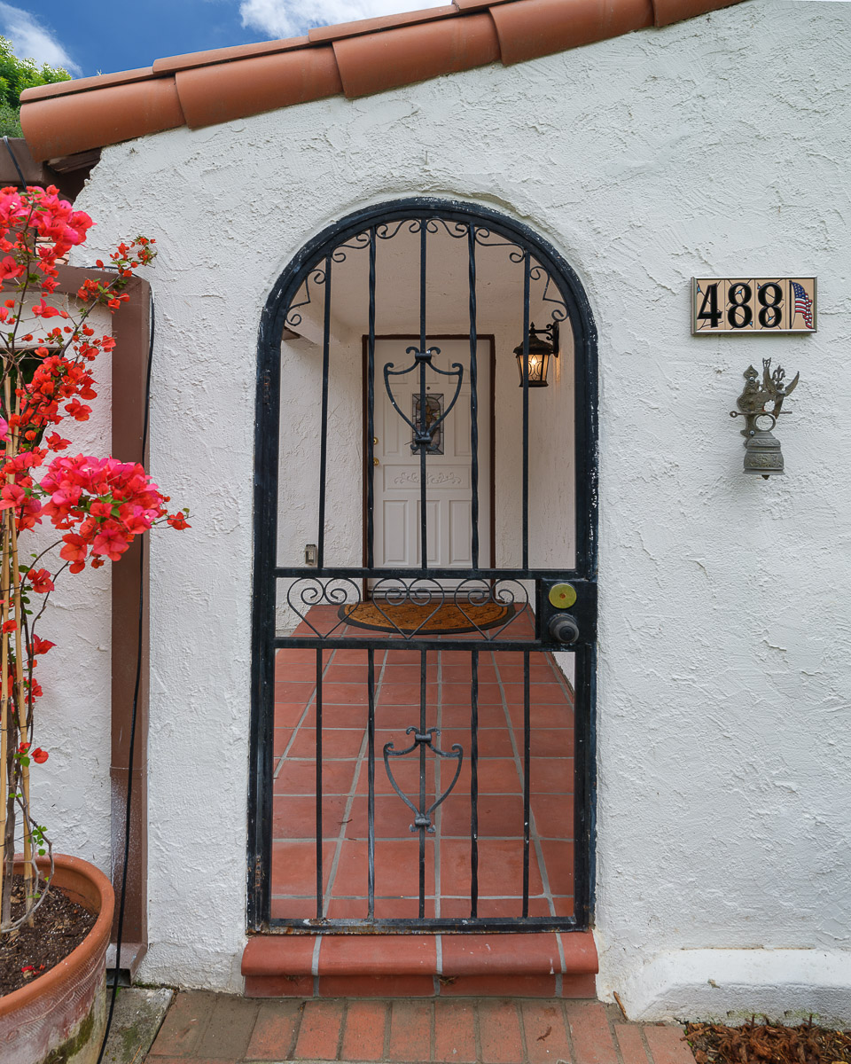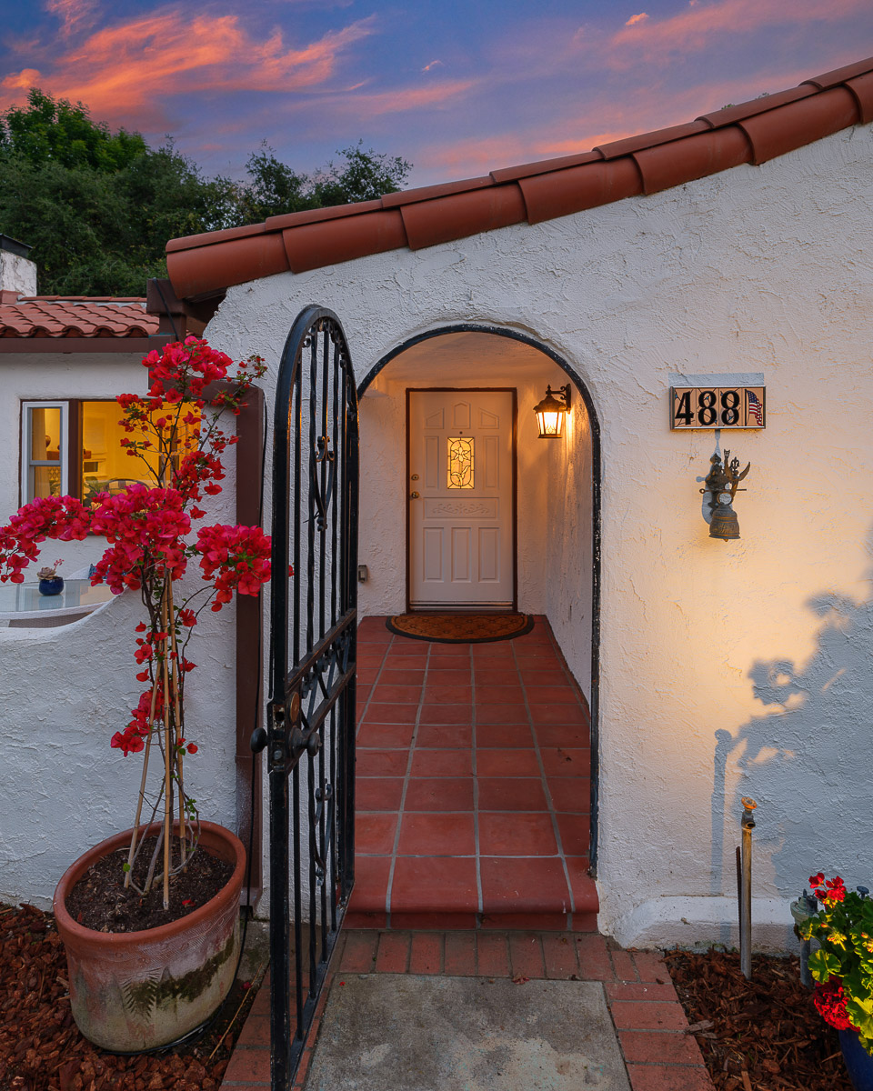 This gracious three bedroom, two bath 1,688 square foot (measured) Spanish, with an expansive 402 square foot (measured) detached bonus office or family room, sits on a quiet cul-de-sac in the beautiful Altadena foothills. The gated property invites you in with a romantic, walled courtyard that is framed by blooming bougainvillea. The Saltillo covered patio steps up to the front door that opens into the elegant interior that has been painstakingly remodeled. The gorgeous living room features gleaming hardwood floors, a central decorative fireplace with artisan tile, an enchanting rich wood mantle, a tray ceiling, recessed lighting and a large front window that frames views of our majestic San Gabriel Mountains rising in the distance. In addition, there is an inviting formal dining room, as well as a picture-perfect, renovated kitchen with butcher block counters, floating stainless steel shelving, an oversized farmhouse sink, a coffee station or wet bar, custom white cabinetry, as well as a quaint breakfast nook. Not to be missed are the three bedrooms, with two spa-like baths, including a spacious primary suite that has a bonus bump-out, as well as an attached, elegantly updated bath. This space, all in the back of the home, has an area that would work equally well as a second closet or a kitchenette so that this wing of the house could be used as a separate living space. It is easily accessed via its own private entrance off the rear of the home. Finally, there is a fantastic bonus room off the garage that has tall glass doors, an ornamental stone fireplace, skylights and a soaring vaulted ceiling. It is stunning and offers limitless possibilities.